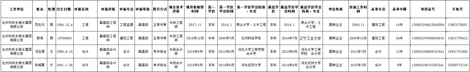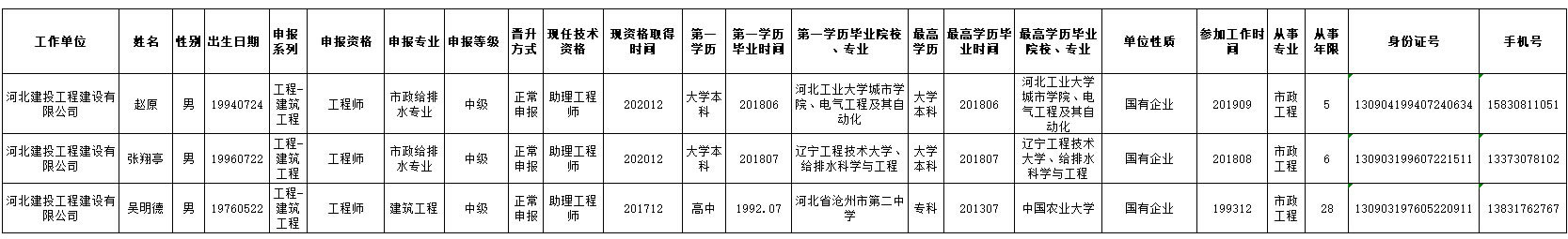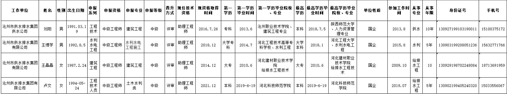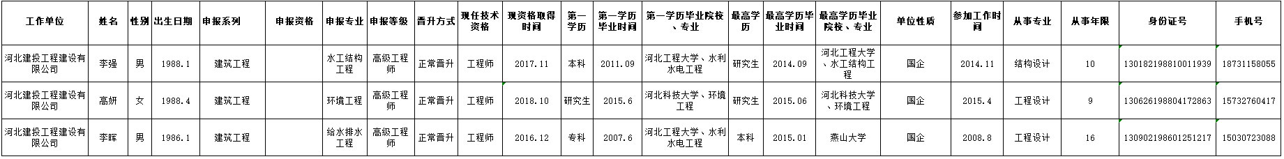 2020年河北建投水務環境工程有限公司申報職稱人員公示表